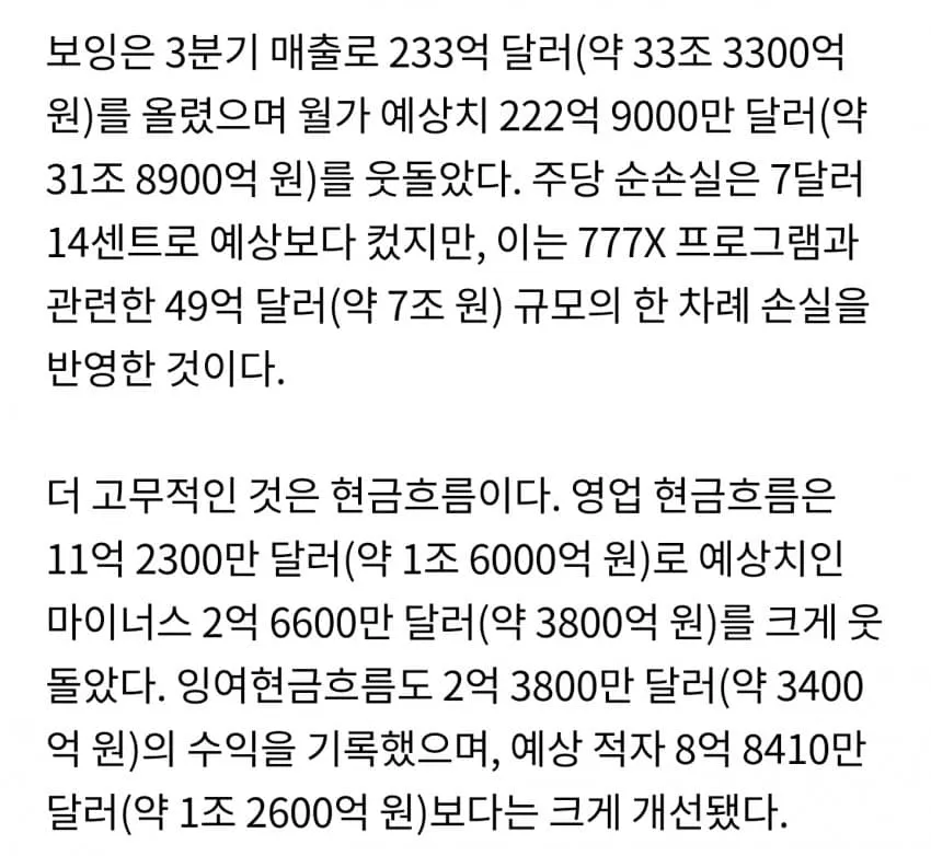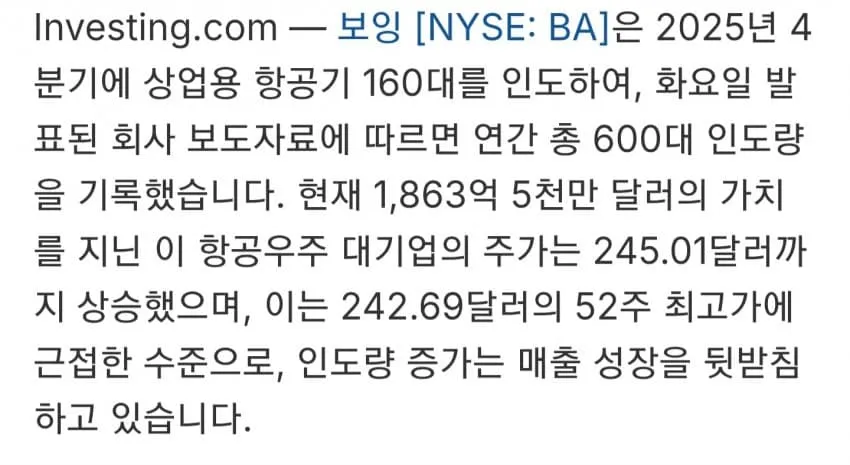 보잉의 매출도 2019년 이후로 최대이고 24년 대비 34% 이상 증가했다고.