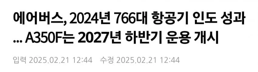 에어버스 인도량의 75% 이상까지 따라잡았다고함.