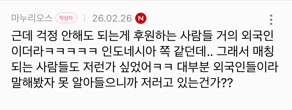 매칭할 때 외국인들 오만가지 ㄸㄲ쇼 하는데 쟨 저러고 걍 가만히 있어ㅋㅋㅋㅋㅋㅋㅋㅋㅋㅋㅋㅋㅋ
