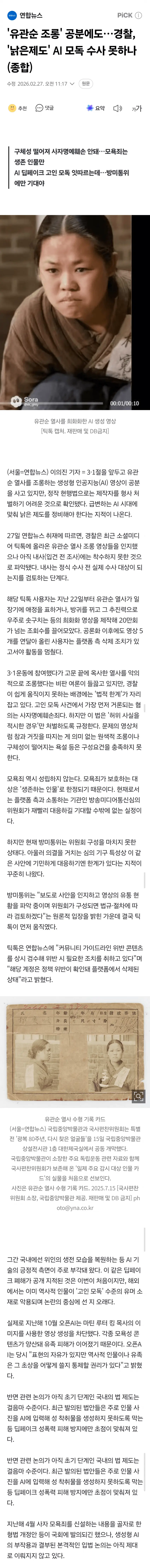 - 관련게시물 : 3·1절 앞두고 '유관순 방귀' 영상 공분…AI 역사재현의 양면