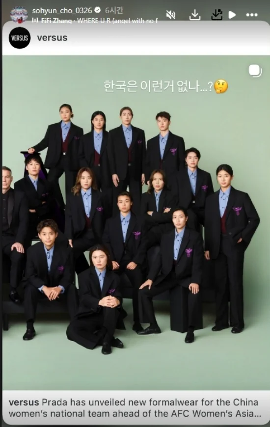 이를 본 A매치 156경기 출전 경력의 레전드 조소현이 자신의 인스타그램에 관련 게시물을 공유하며 "한국은 이런거 없나?"라고 말했다.