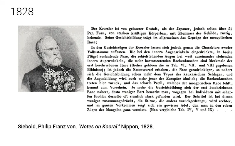 일본 최초로 근대 인류학적 연구를 시행해 기록한 그의 저서 "Nippon"에 따르면