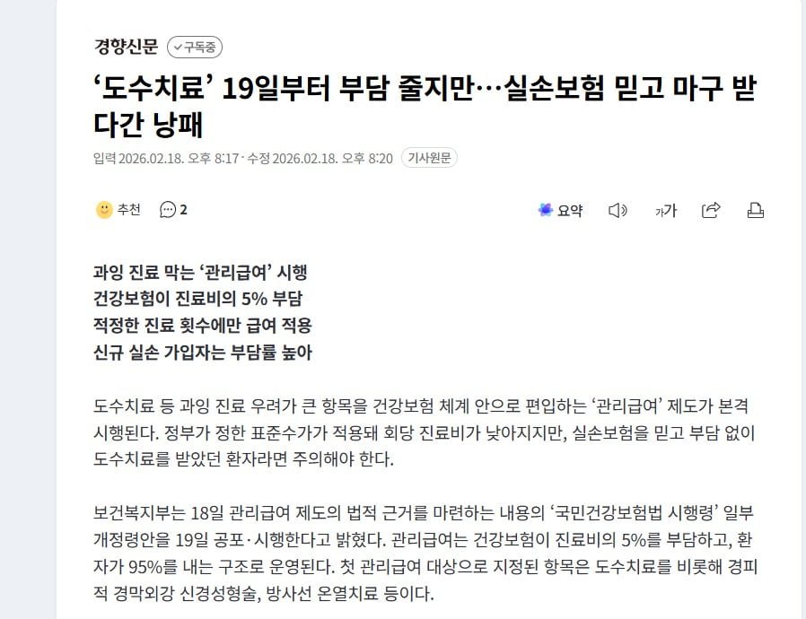 과잉진료한다고 관리급여되서 건당 10만원이 5만원으로