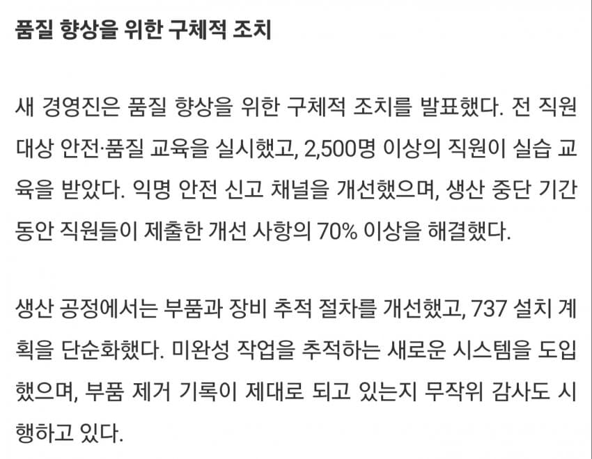 또한 보잉 위기의 원인 중 하나가 하청 관리 실패였는데