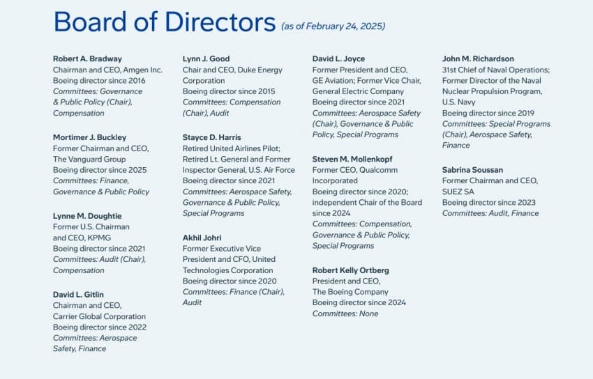 보잉이 항공기 제작 회사임에도 불구하고 이를 감독하는 이사회는