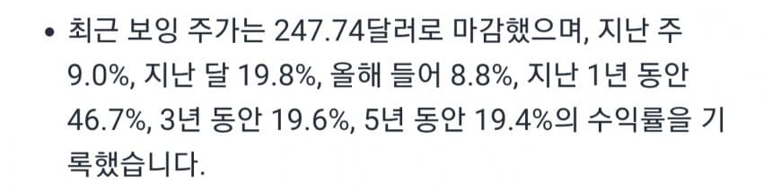 또한 보잉의 주가는 1년동안 46%가 폭등했고