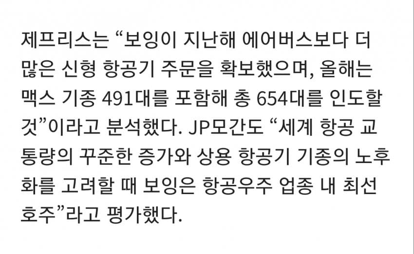 보잉의 매출도 2019년 이후로 최대이고 24년 대비 34% 이상 증가했다고.
