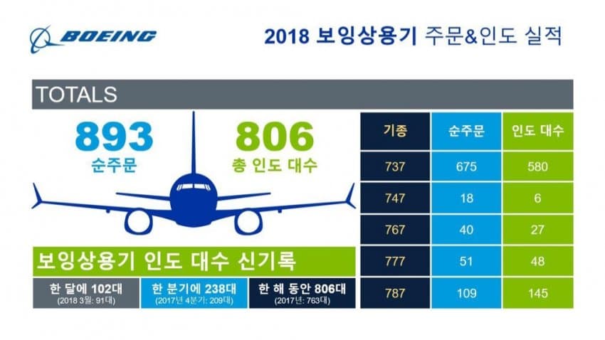 이렇게 되면 보잉의 역대 최대 항공기 인도기록이었던