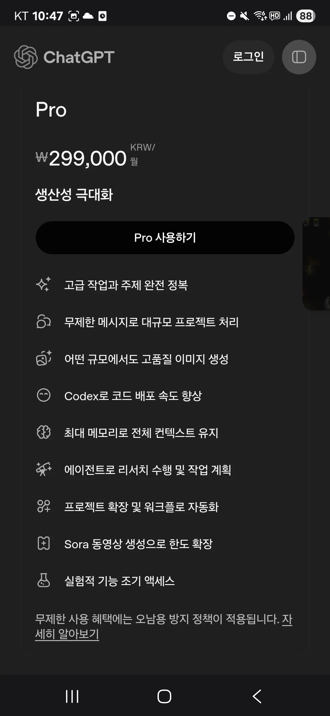 지피티 공홈에서는 지금 프로 플랜이 30만원이다