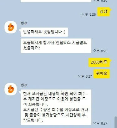 알고보니 빗썸 이벤트 참가자 보상으로 2000원을 줘야하는데
