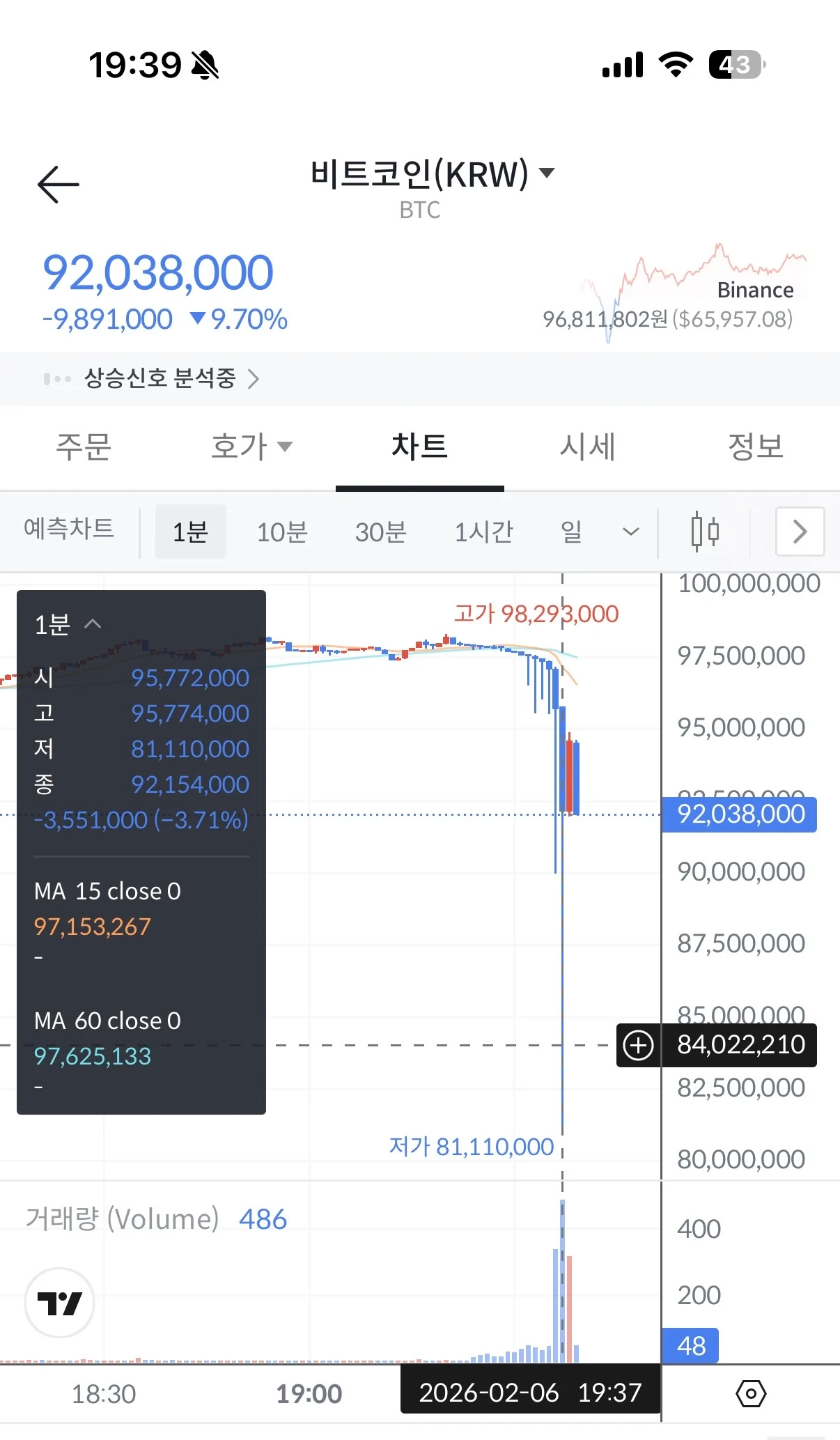 다들 팻핑거 인가 하고 하락장 줍줍 이벤트라고 놀다가