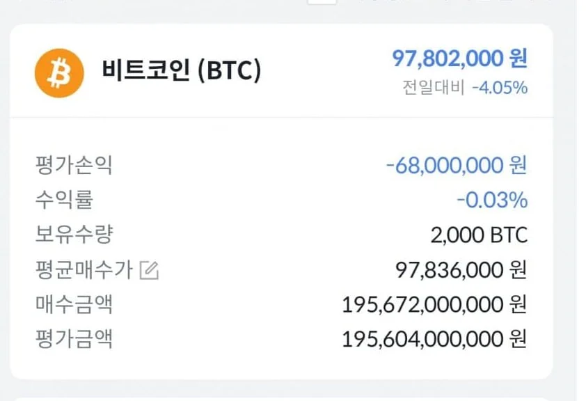 누군가 수백,수천억원어치 비트코인을 시장에 던져서 꼬라박기 시작