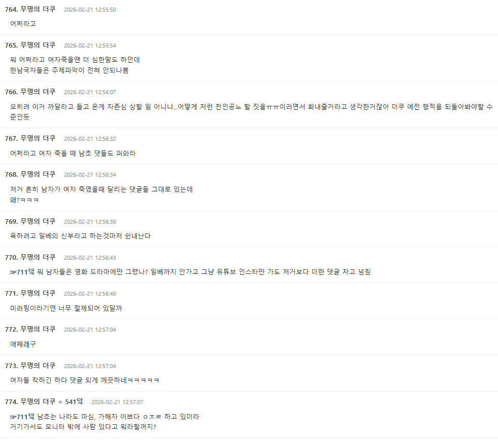 보통 사람들처럼 저년 욕하는 댓이 주류였지