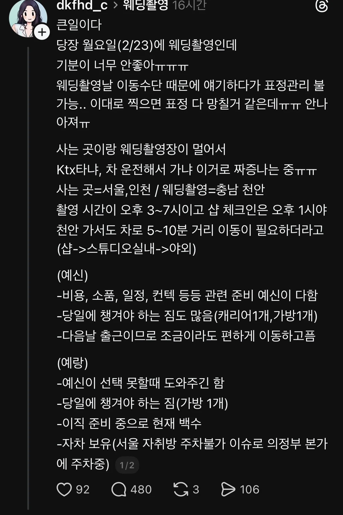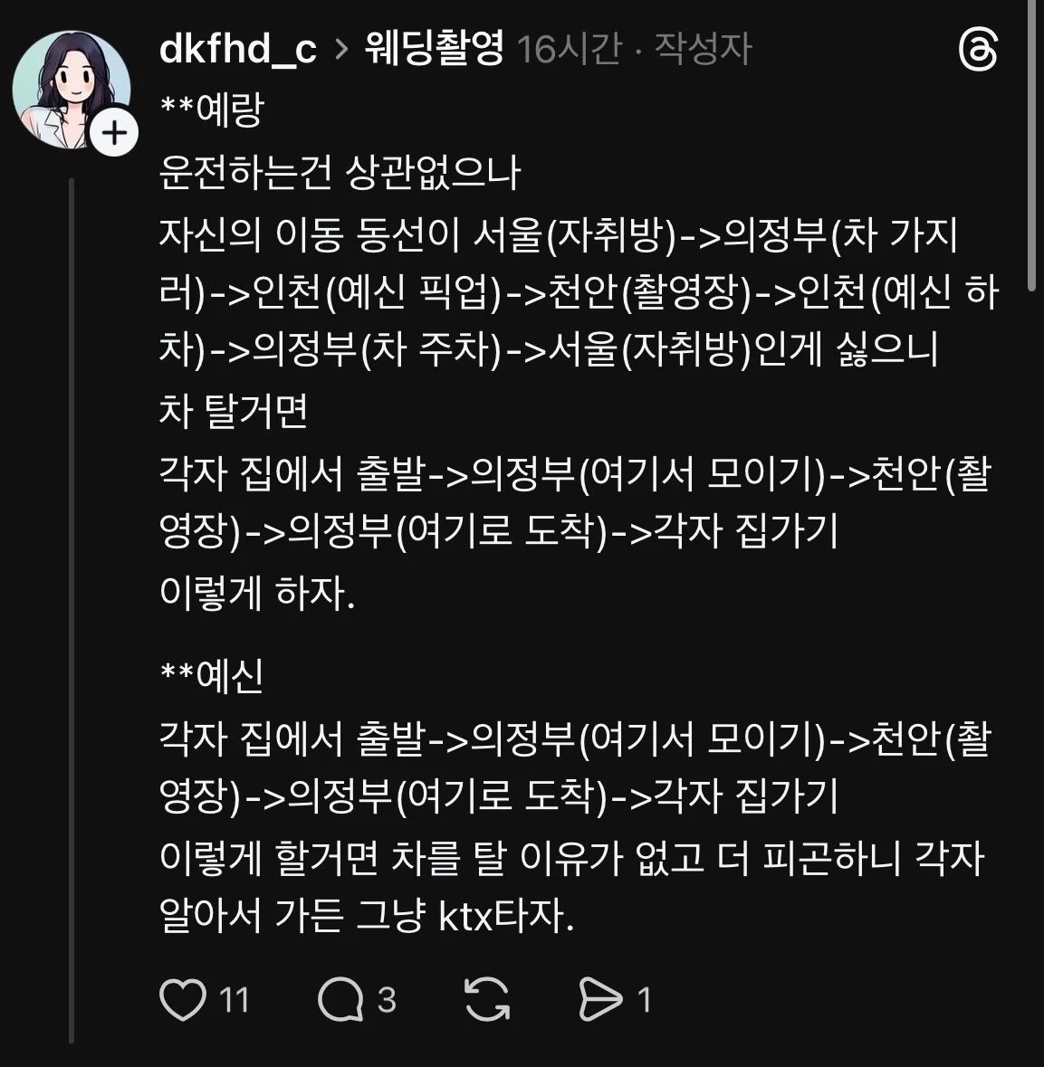 웨딩 준비하는 과정에서 촬영 하러 천안까지 가야하는데