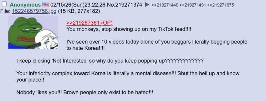 미국: 동남아 원숭이 새끼들아 내 틱톡 피드에 그만 좀 떠라!!!