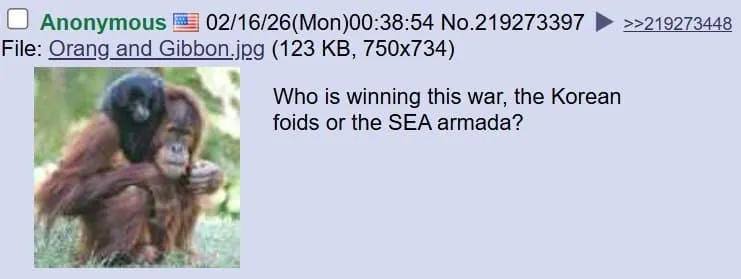 미국인: 동남아 원숭이 새끼들은 원숭이로 표현해서 화났으면서 원숭이가 함께하면 강하다는 식으로 나옴 ㅋㅋ