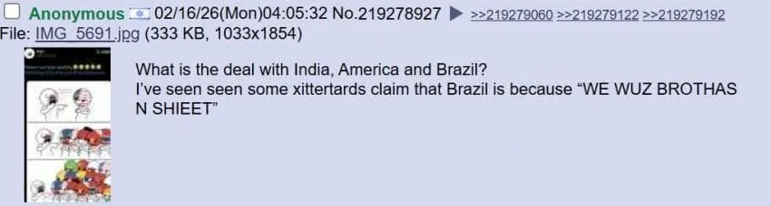 동남아 짹창년들 브라질 보고 우리는 형제니까!! 라고 씹소리 하던데