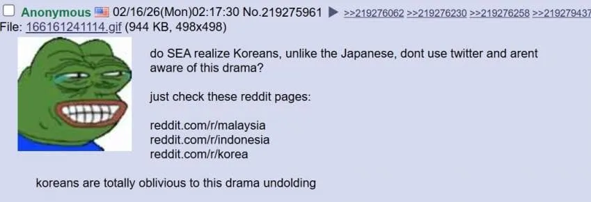 레딧 페이지 보면 레이시아,인도네시아는 난리인데 한국은 별거 없음