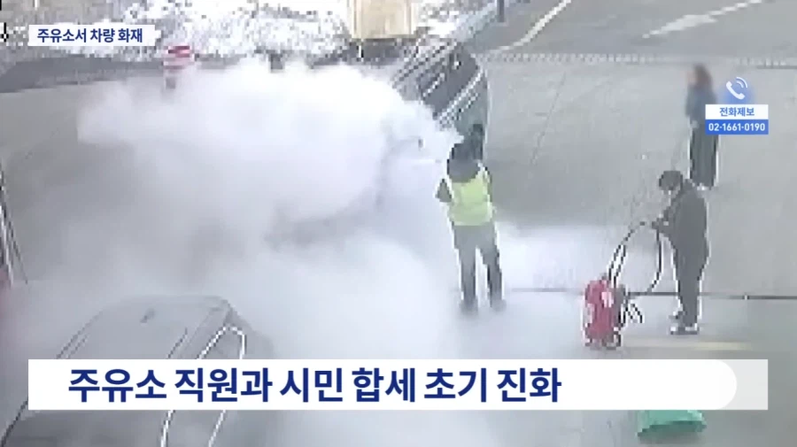 그리고.. 근처 시민들과 주유소 직원 등 너나 할거 없이 소화기 들고와서 불끄는 와중에